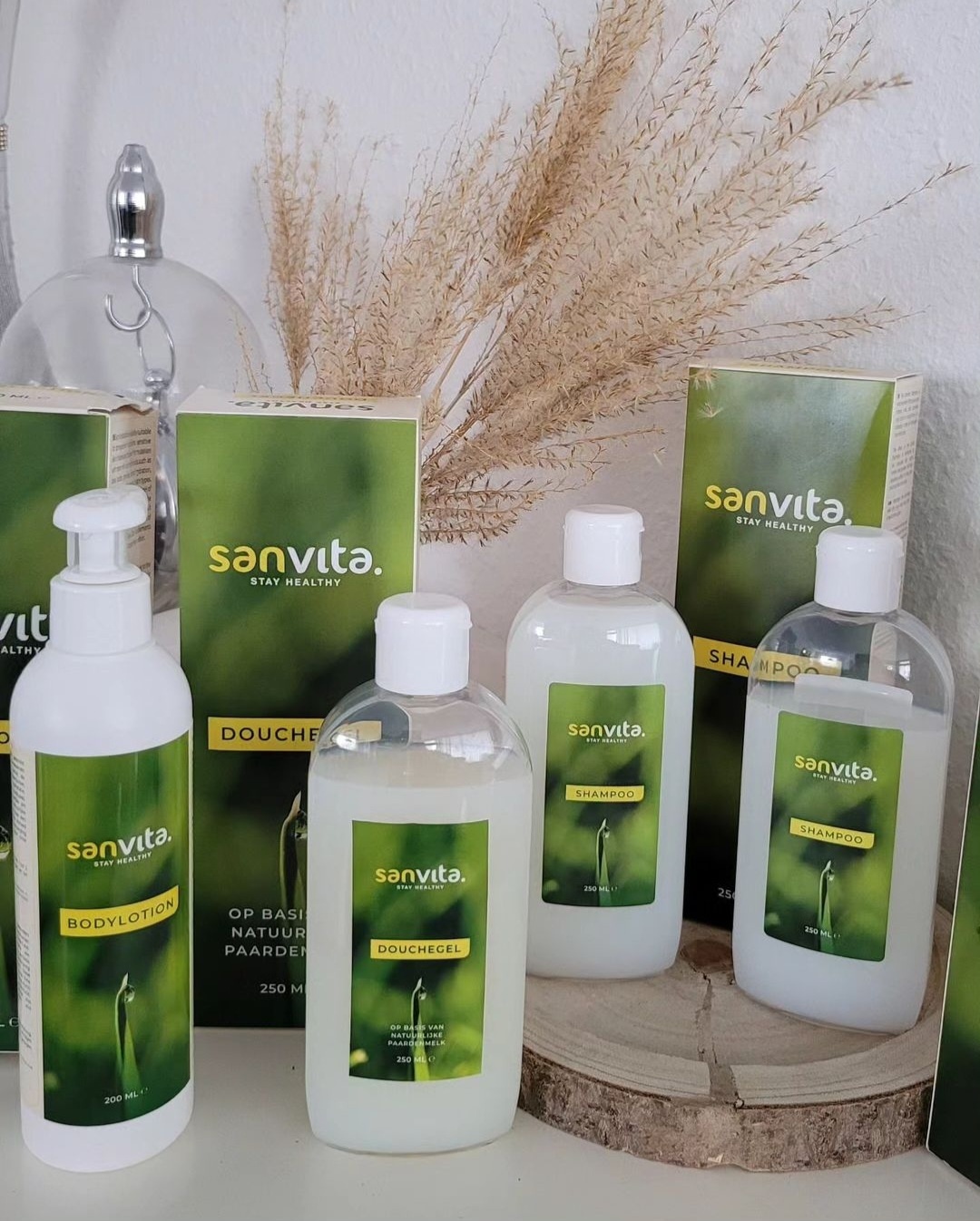 Natuurlijke paardenmelk shampoo van Sanvita is fris en verzorgend voor je hoofdhuid en is geschikt voor jong en oud. Een gevoelige hoofdhuid wordt aangetast door veel shampoos die je bij drogisterijen kunt kopen. Deze shampoos bevatten vaak parfums waar zware metalen of zoveel chemische toevoegingen in zitten. Hierdoor moeten haren herstellen van de wasbeurt. Zonder de natuurlijke beschermlaag aan te tasten, zorgt onze paardenmelk shampoo voor een milde reiniging en natuurlijke verzorging van haren en hoofdhuid.